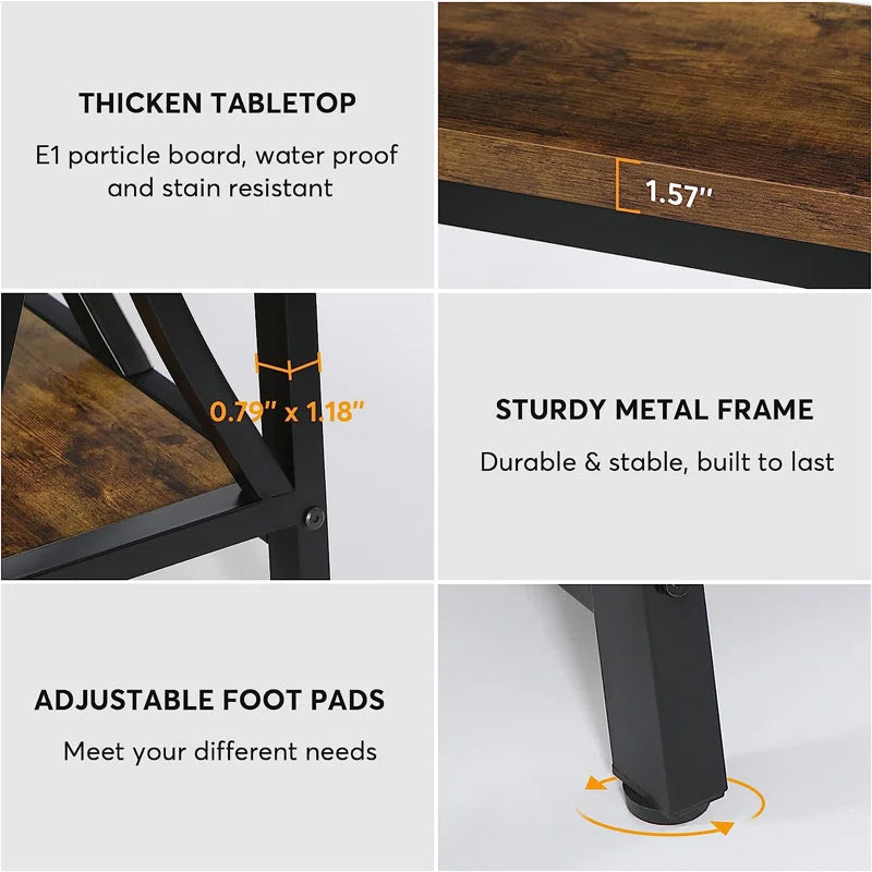This console table brings a mix of rustic charm and industrial flair to your entryway or living room. The top and lower shelf are made from engineered wood, while the frame incorporates sturdy metal for eye-catching contrast and exceptional stability. The surfaces are spacious enough to hold baskets and décor underneath, while vases and lamps have found the perfect landing site. At 31.5" and just under 71" wide, it fits nicely behind larger sofas or against the wall.