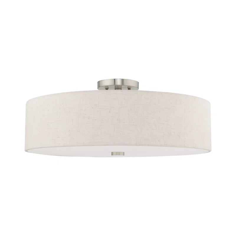 This 5-light drum semi-flush mount illuminates your home in a classic, contemporary design. The frame is made from metal and features a fabric drum shade that is capped with a plastic diffuser and a round finial in a metallic finish. Inside sit five 60W bulbs (not included) that cast a bright glow throughout your space. This fixture is compatible with a dimmer switch to effortlessly take you from day to tonight. Plus, it's rated for damp areas so you can add it to your bathroom with a steamy shower.